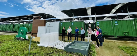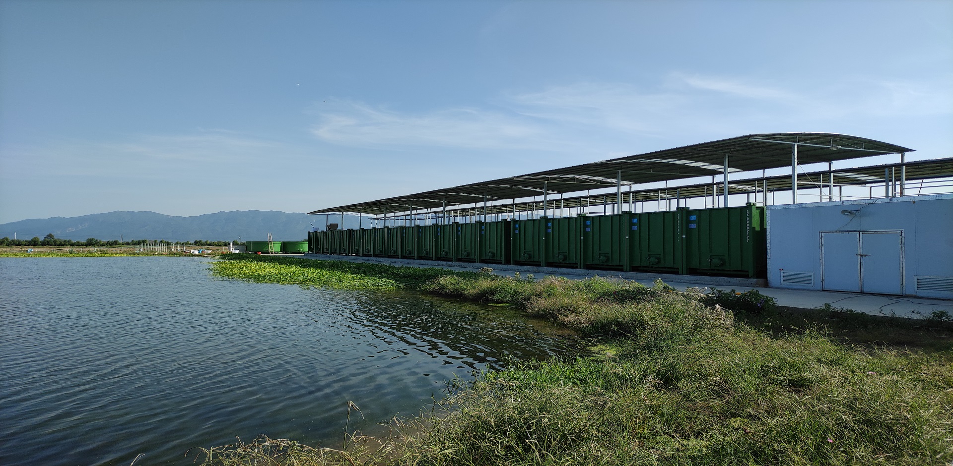 集裝箱式養(yǎng)殖系統(tǒng)采用 20 呎定制化“集裝箱”,尺寸是 6.1 米 *2.4 米 *2.8 米,養(yǎng)殖水體 25 立方米,占地面積為 15 平方米 ,配有納米增氧管(增氧)、出魚口(收魚)、集污槽(排污)、天窗(觀察投喂飼料)、固液分離器(尾水處理)等功能構件。